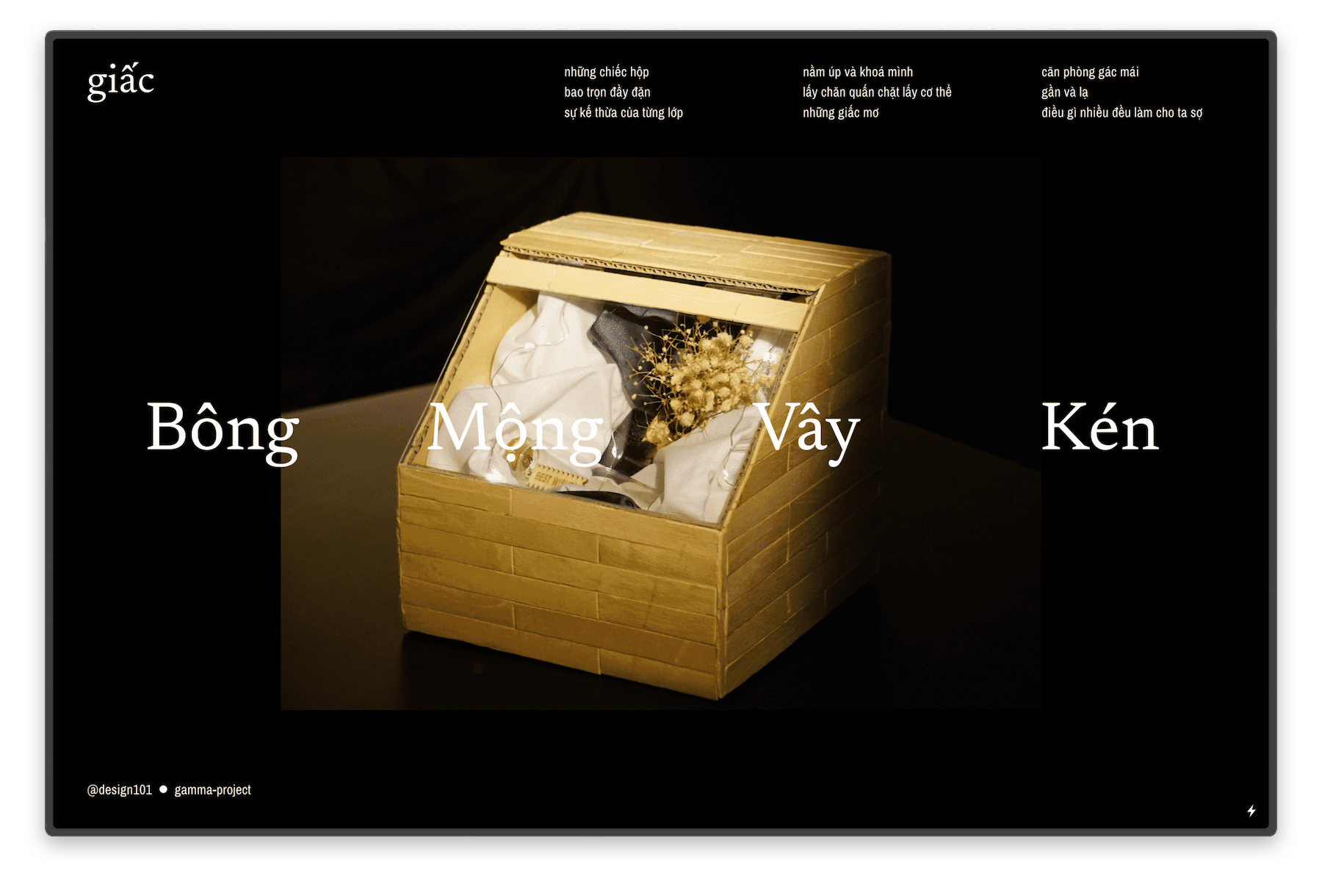 Because the output of Giấc was physical, it provided an ideal playground for me to test different mediums. Visualizing abstract experiences, such as sleep rituals, was challenging, but through the process, I had fun learning about materials and craft techniques. Without a doubt, this project is a great opportunity, and I will continue to experiment with more boxes.