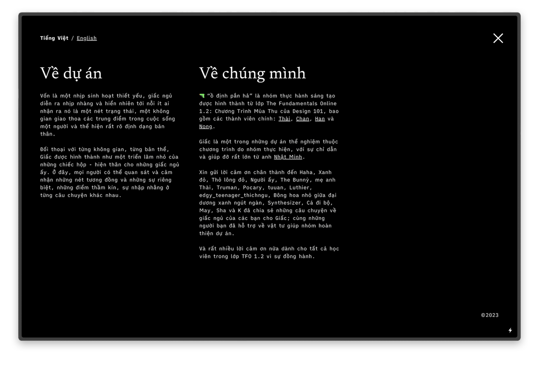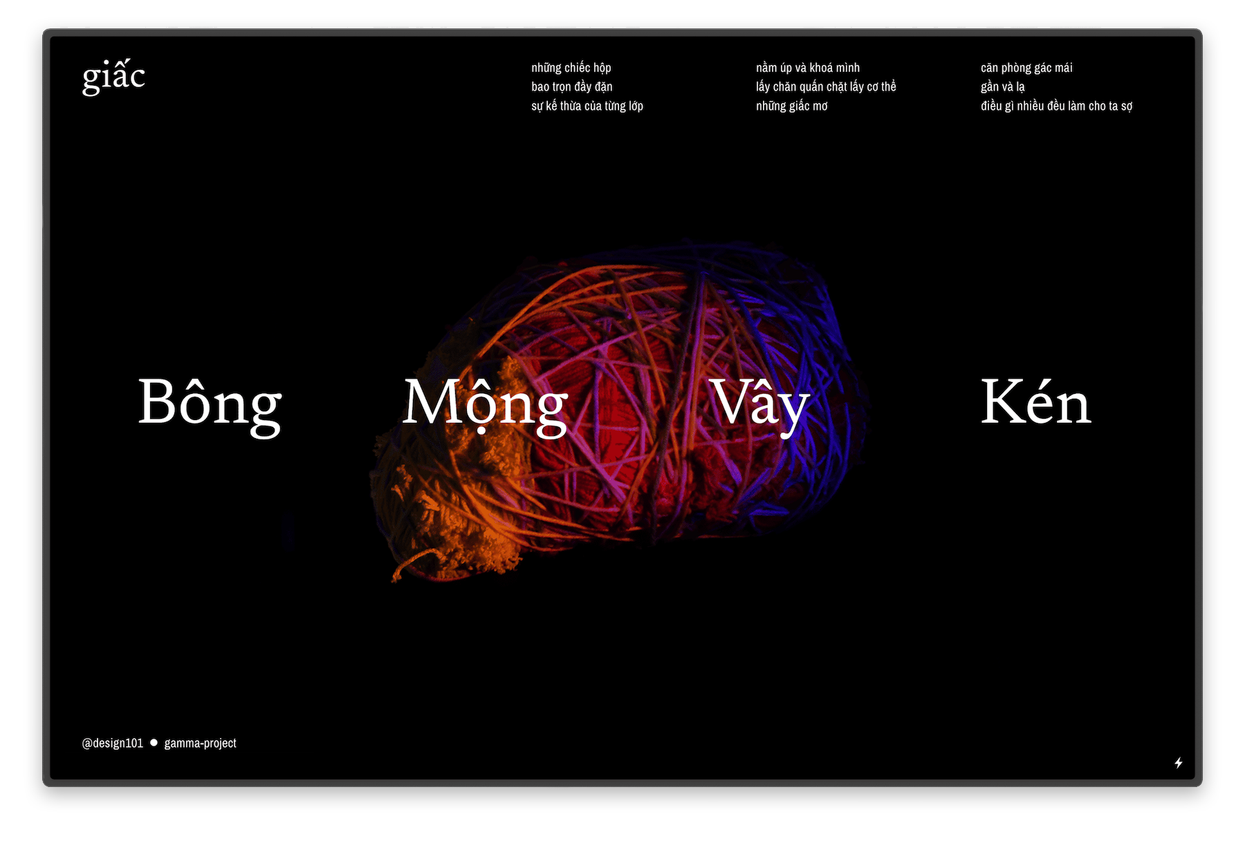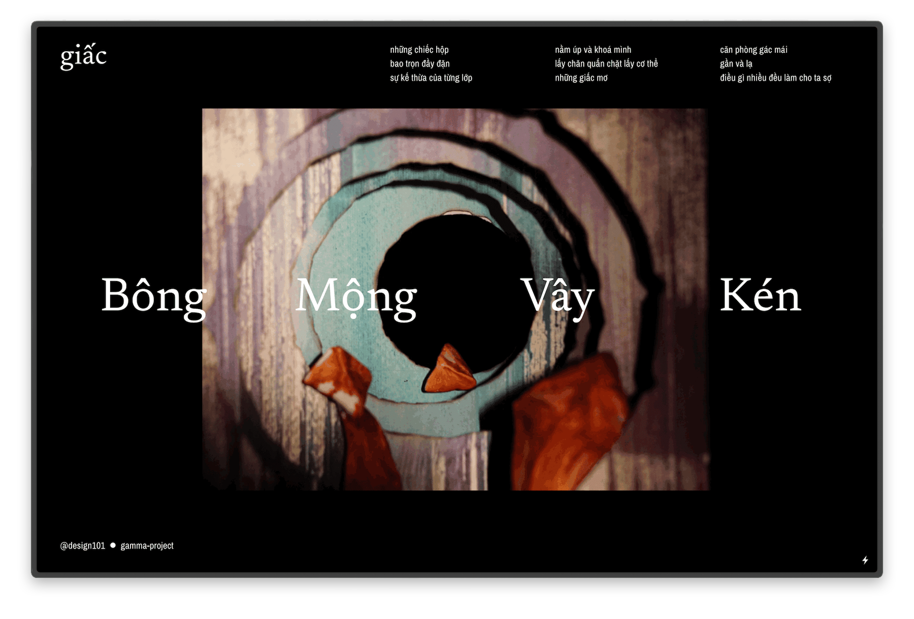 → Giấc's site (The website is currently down due to maintenance costs. In the mean time, you can view my work - Kén - on an alternative page.)