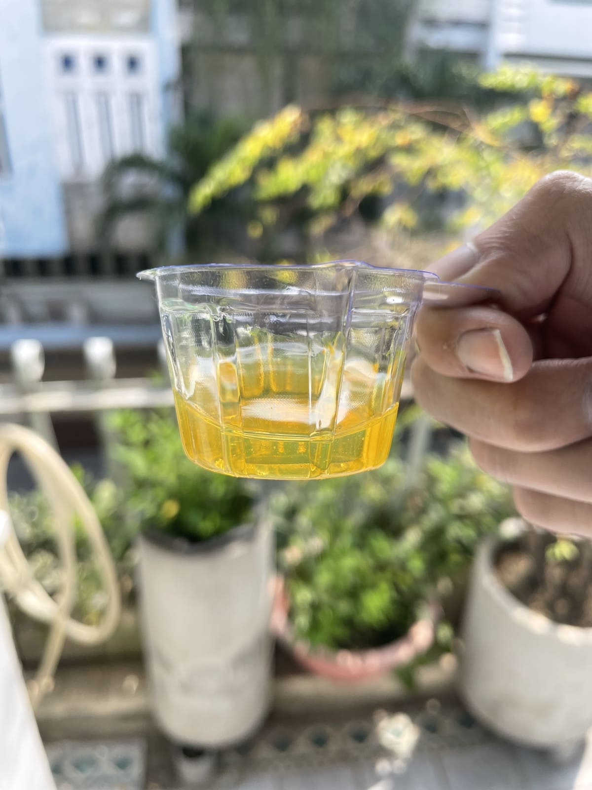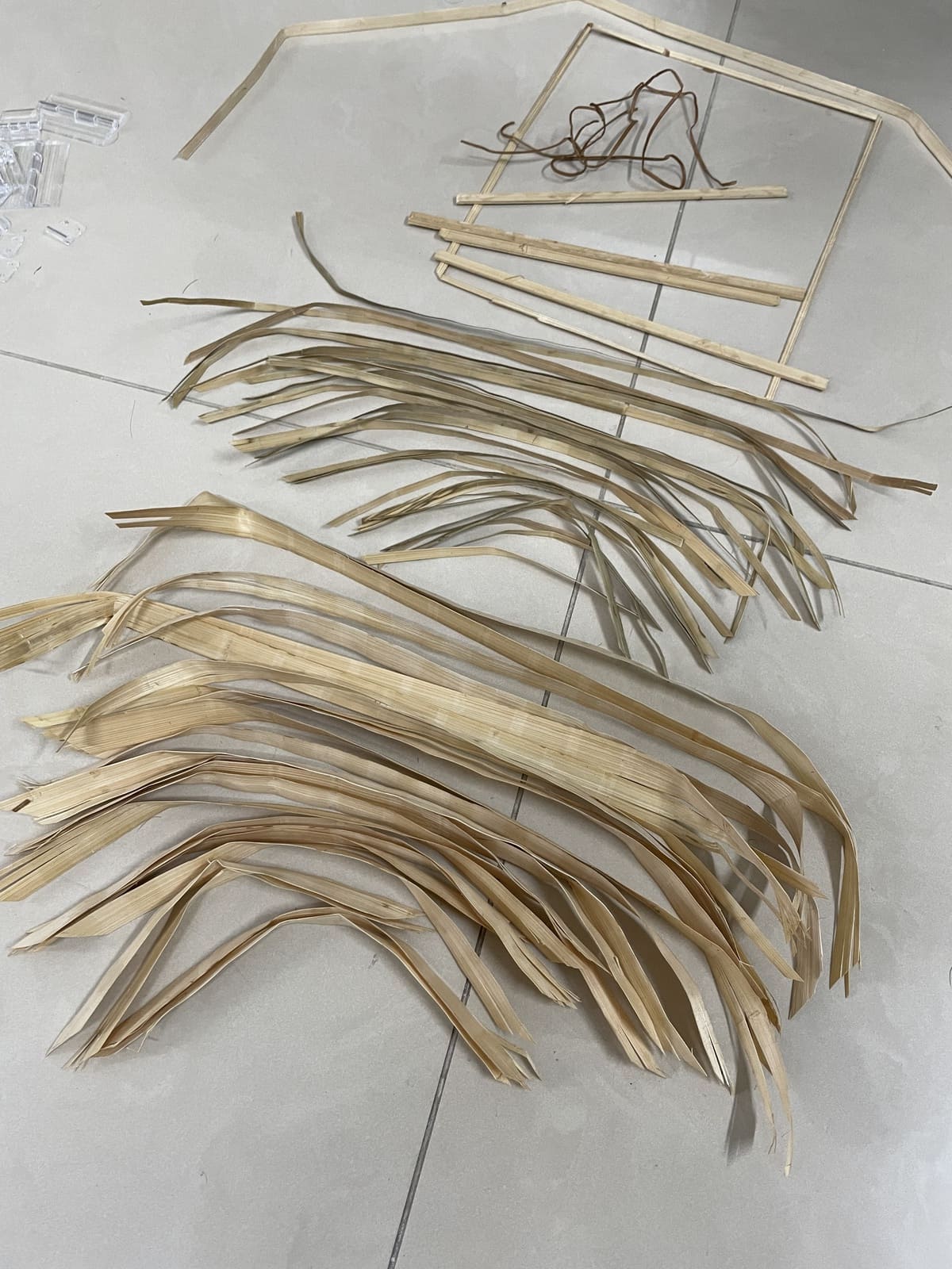 The bamboo box represents the time when she was a newborn, sleeping in her family crib (fig 3.1). Luckily, I had this bamboo gift box at my house (fig 3.2). It had been used to store last year's Tet gifts, and my mom had kept the box for other storage reasons. The box had a body and a separate lid, but the body was more than enough. I needed to fit the bamboo structure into the fabric box while resembling the weaving pattern of the crib, so I decided to reconstruct it. I carefully took it apart (fig 3.3) and then gently scrubbed and rinsed the pieces to get rid of adhesive residue. I let them dry overnight on my balcony, avoiding the sun because it would make the bamboo too dry and brittle (fig 3.4).