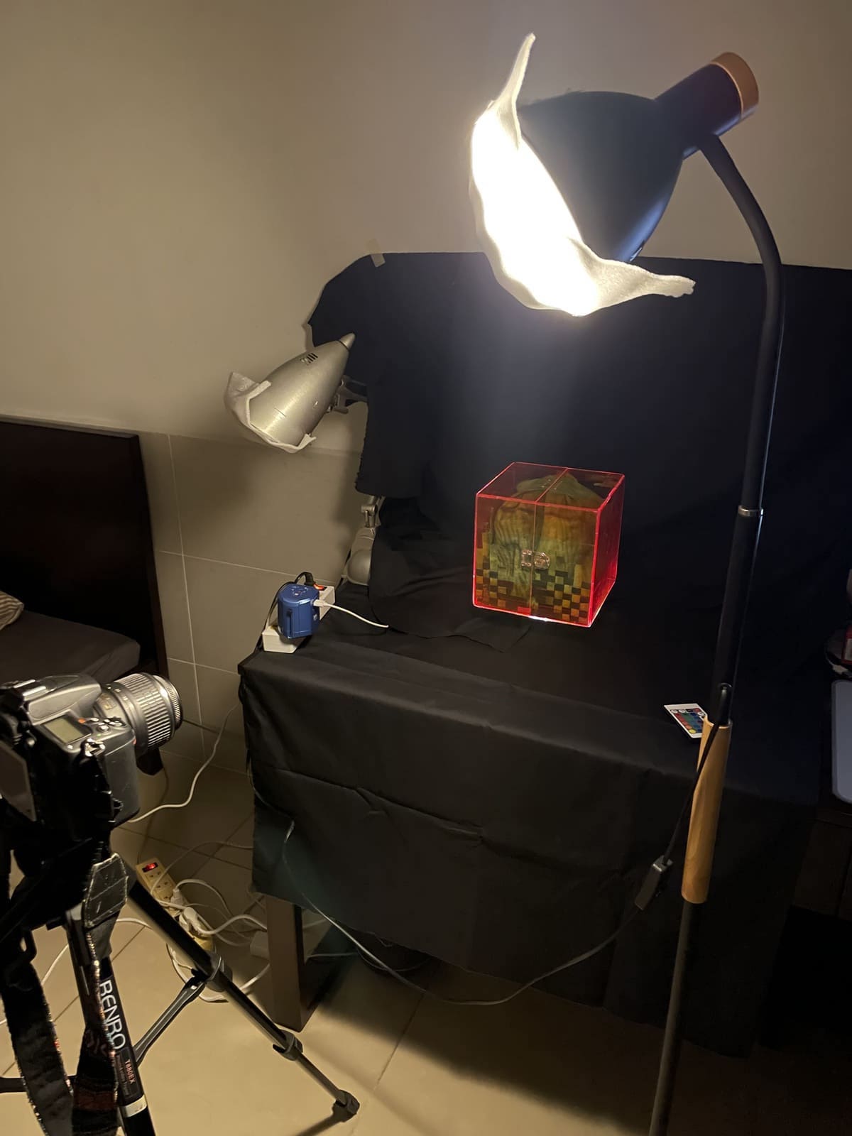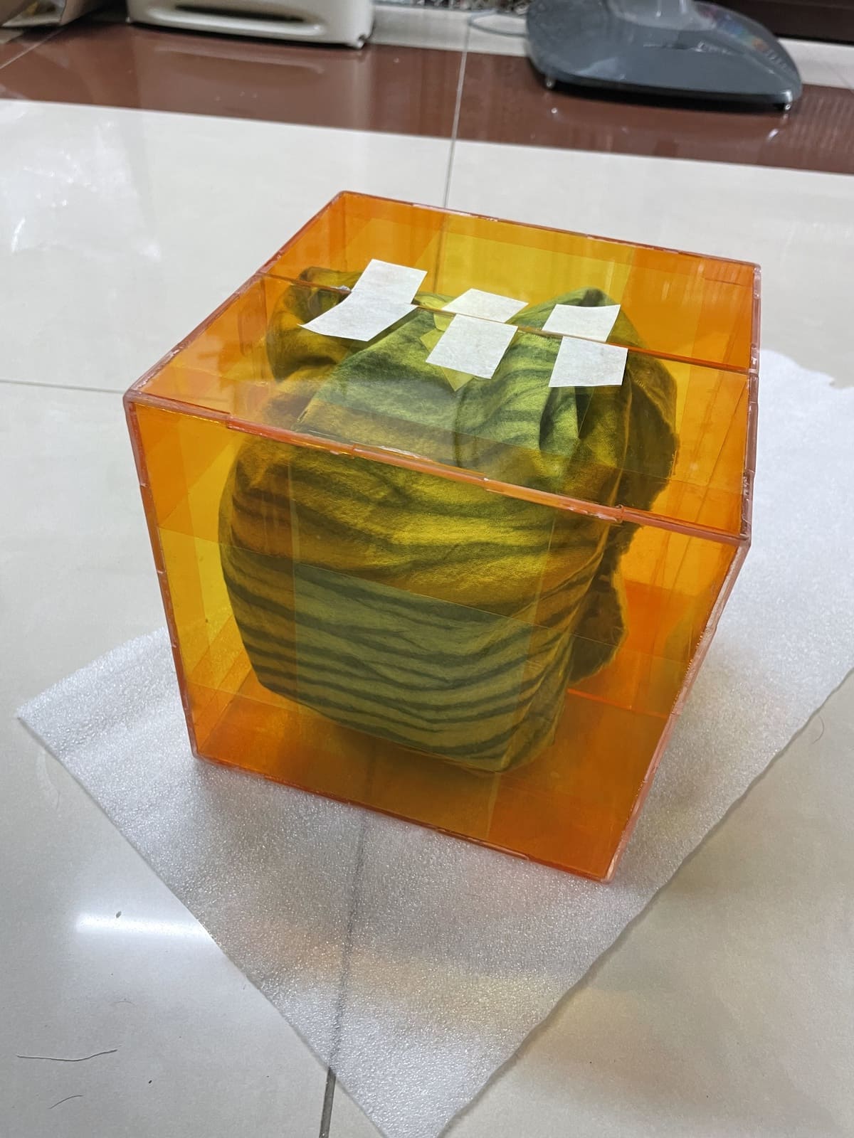 If you notice, you can see white spots on the edges of the acrylic box due to the use of super glue. When the super glue hardened, it emitted smoke and formed white residue where the contact wasn’t tight enough. I should have used UV glue instead.
