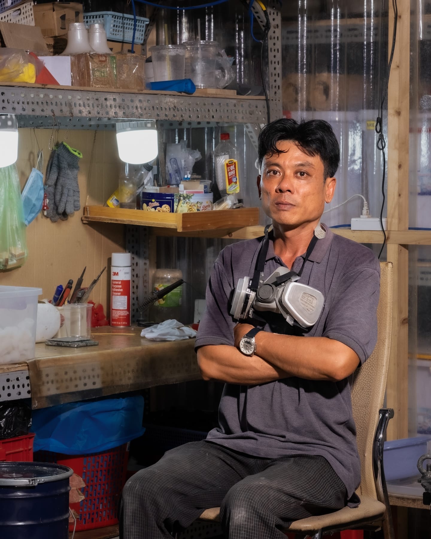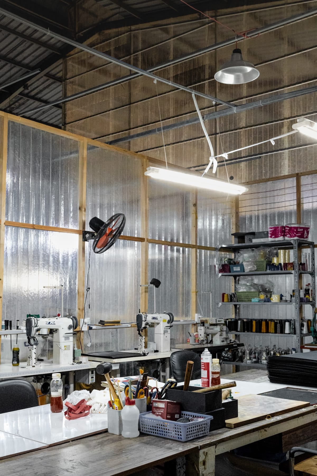 The shoot was set within the brand’s workshop, grounding the visuals in the actual production environment. This introduced new constraints - both spatial and environmental - especially when working with a full collection in a single frame.